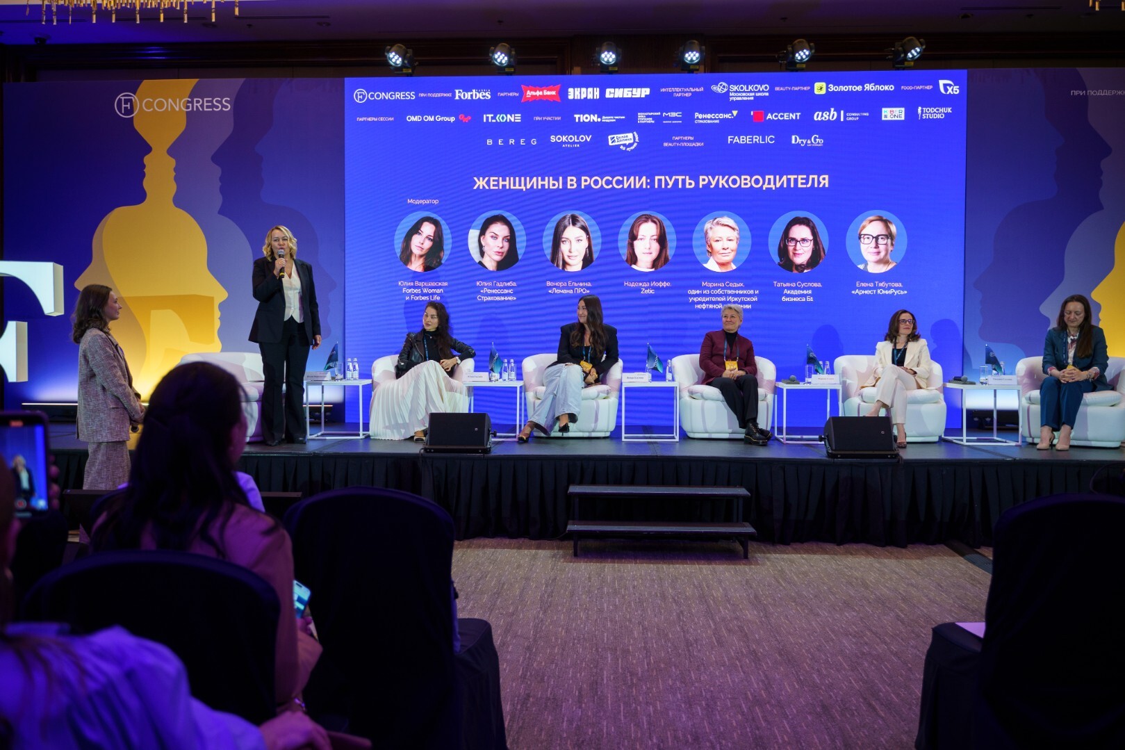 Спикеры сессии «Женщины в России: путь руководителя» обсудили, как преодолевать «стеклянный потолок» и какие меры поддержки для женщин необходимы в российских компаниях. Среди спикеров отметились: Юлия Гадлиба, генеральный директор «Ренессанс Страхование»; Венера Ельчина, заместитель генерального директора «Лемана ПРО»; Надежда Иоффе, партнер Zetic; Марина Седых, один из собственников и учредителей Иркутской нефтяной компании; Татьяна Суслова, генеральный директор Академии бизнеса Б1, партнер группы компаний Б1; Елена Тябутова, генеральный директор «Арнест ЮниРусь».